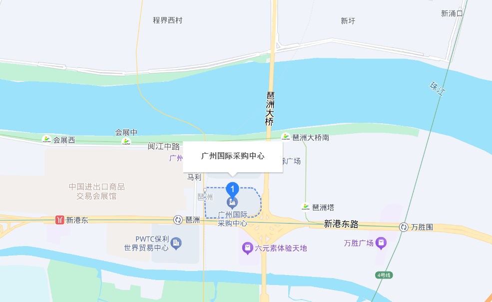 廣州國(guó)際采購(gòu)中心位于廣州市海珠區(qū)琶洲大道東2-8號(hào),地處琶洲會(huì)展商圈核心位置,周邊交通便捷,臨近地鐵8號(hào)線、11號(hào)線琶洲站,周邊有華南快速干線、新港東路等主干道;同時(shí),其緊鄰廣州國(guó)際會(huì)展中心(廣交會(huì)館)、保利世貿(mào)展館等展館,周邊還有香格里拉大酒店等五星級(jí)酒店及地鐵沿線的大型商場(chǎng)、影院等商業(yè)娛樂(lè)設(shè)施。
